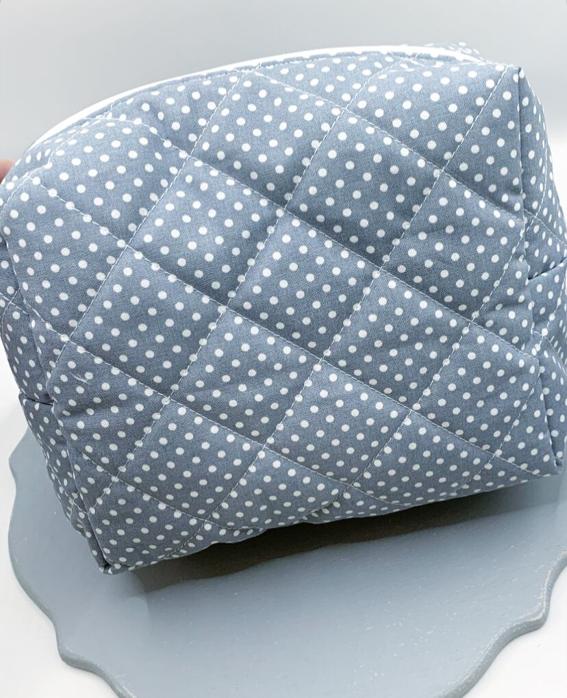 ドット柄キルト刺繍ポーチ マチ付き大サイズ 三輪のお花